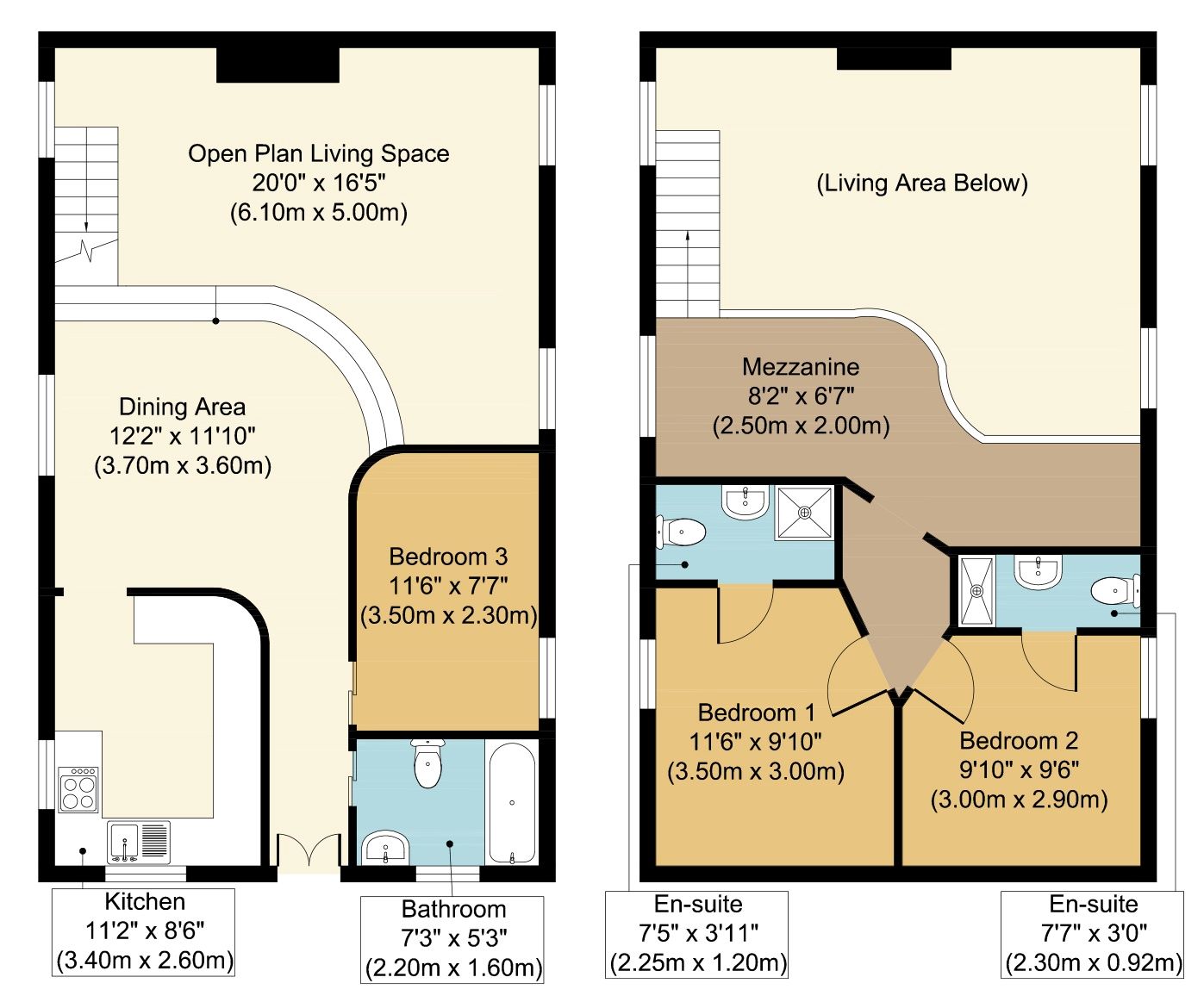 2 x Double Bedrooms - both with Shower En-suite.